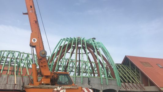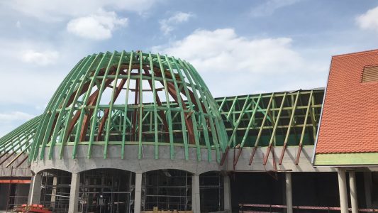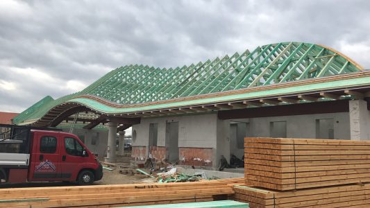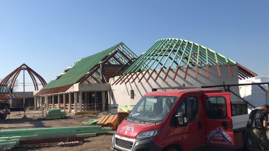 Kiemelt szakmai tapasztalatunkat jól mutatja, hogy részt vettünk a lakiteleki Hungarikum Fürdő kivitelezésében is, amely eddigi munkáink közül az egyik legnagyobb és legösszetettebb projekt volt. Az íves tetőszerkezetek megvalósítása speciális szaktudást és precíz tervezést igényelt, amelyet szigorú tűzvédelmi és munkavédelmi előírások betartásával kellett összehangolni. Büszkék vagyunk arra, hogy egy ilyen volumenű beruházásban is helyt tudtunk állni, és a végeredmény önmagáért beszél.