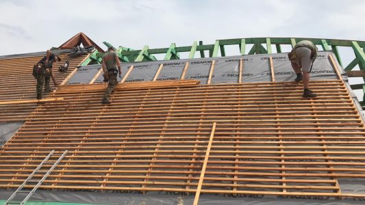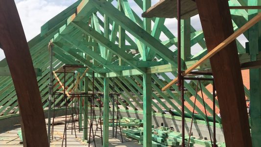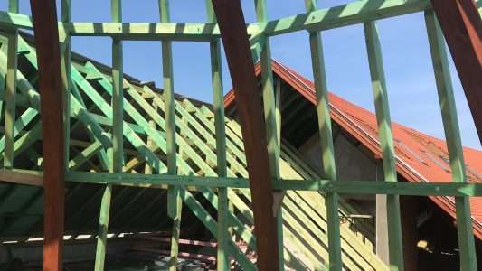 A projekt során egy teljesen új tetőszerkezet építését valósítottunk meg, az Ács-fa Kft.-vel közösen, korszerű és kiváló minőségű faanyagok, valamint tartós fedőanyagok felhasználásával. A cél egy stabil, időjárásálló és hosszú távon megbízható tető kialakítása volt, amely nemcsak védi az épületet, hanem esztétikailag is illeszkedik annak megjelenéséhez.