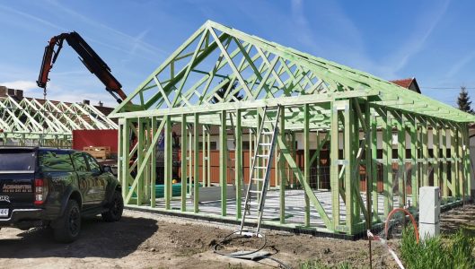 A rácsos tartó tetőszerkezet modern és költséghatékony megoldást kínál családi házak és egyéb épületek fedésére. Az előre gyártott fa tartók pontos méretezéssel készülnek, így a helyszíni kivitelezés gyors és precíz. A rendszer lehetővé teszi a nagy fesztávok áthidalását belső alátámasztás nélkül, ami tágasabb belső tereket eredményez. A szerkezet statikailag tervezett, így biztosítja a hosszú távú stabilitást és terhelhetőséget. A kivitelezés során kiemelt figyelmet fordítunk a csomópontok precíz kialakítására és a minőségi rögzítésekre.
